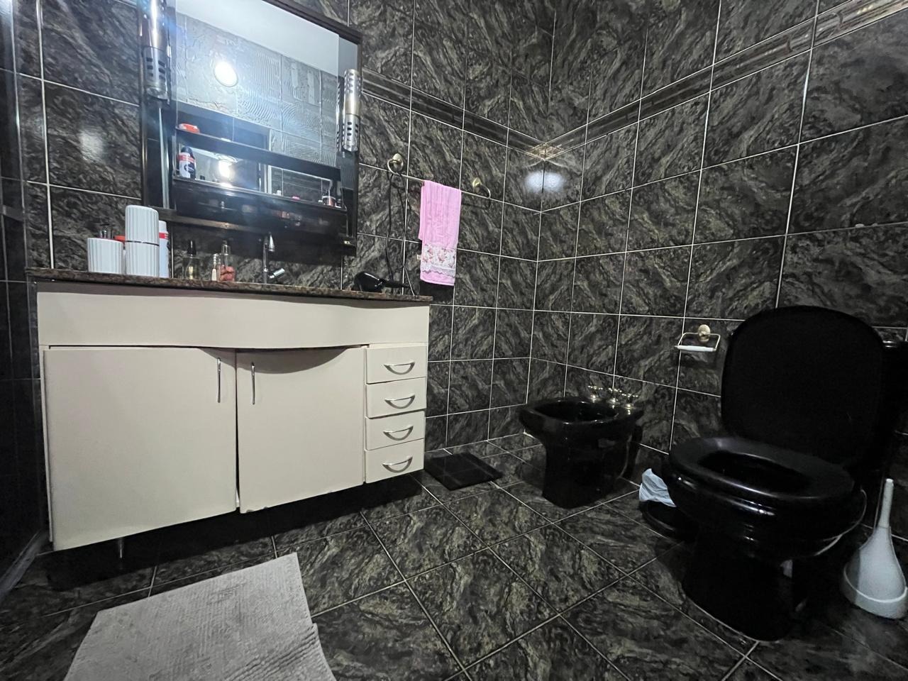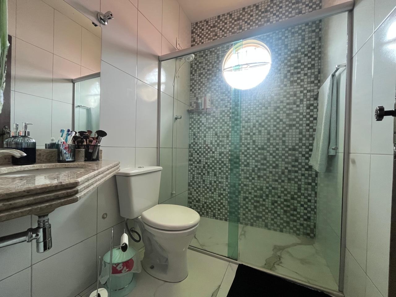 - Banho social com box em vidro temperado e bancada em granito;