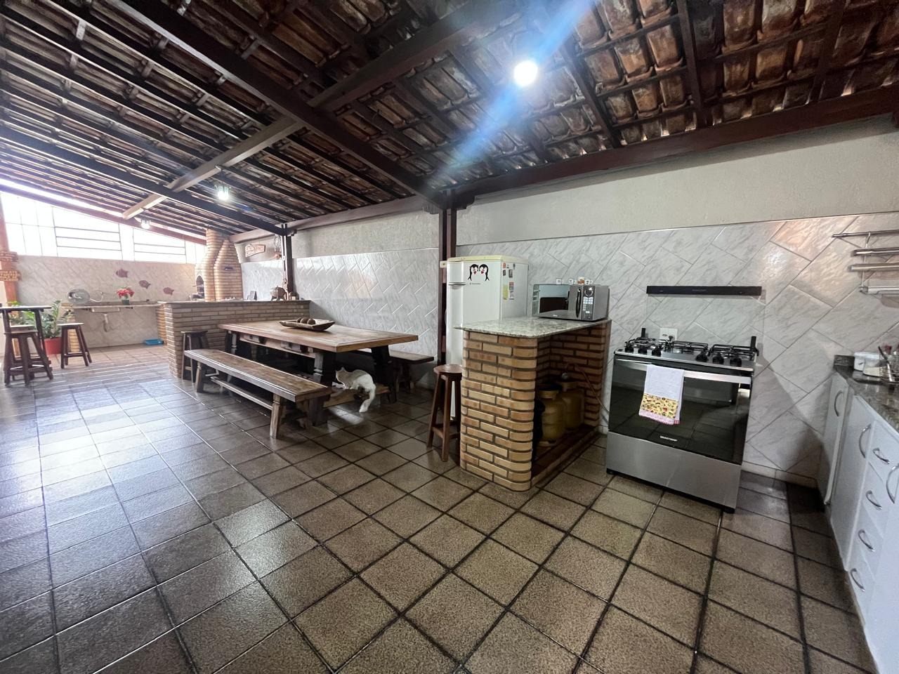 - Cozinha externa coberta, com bancada em granito, armários;