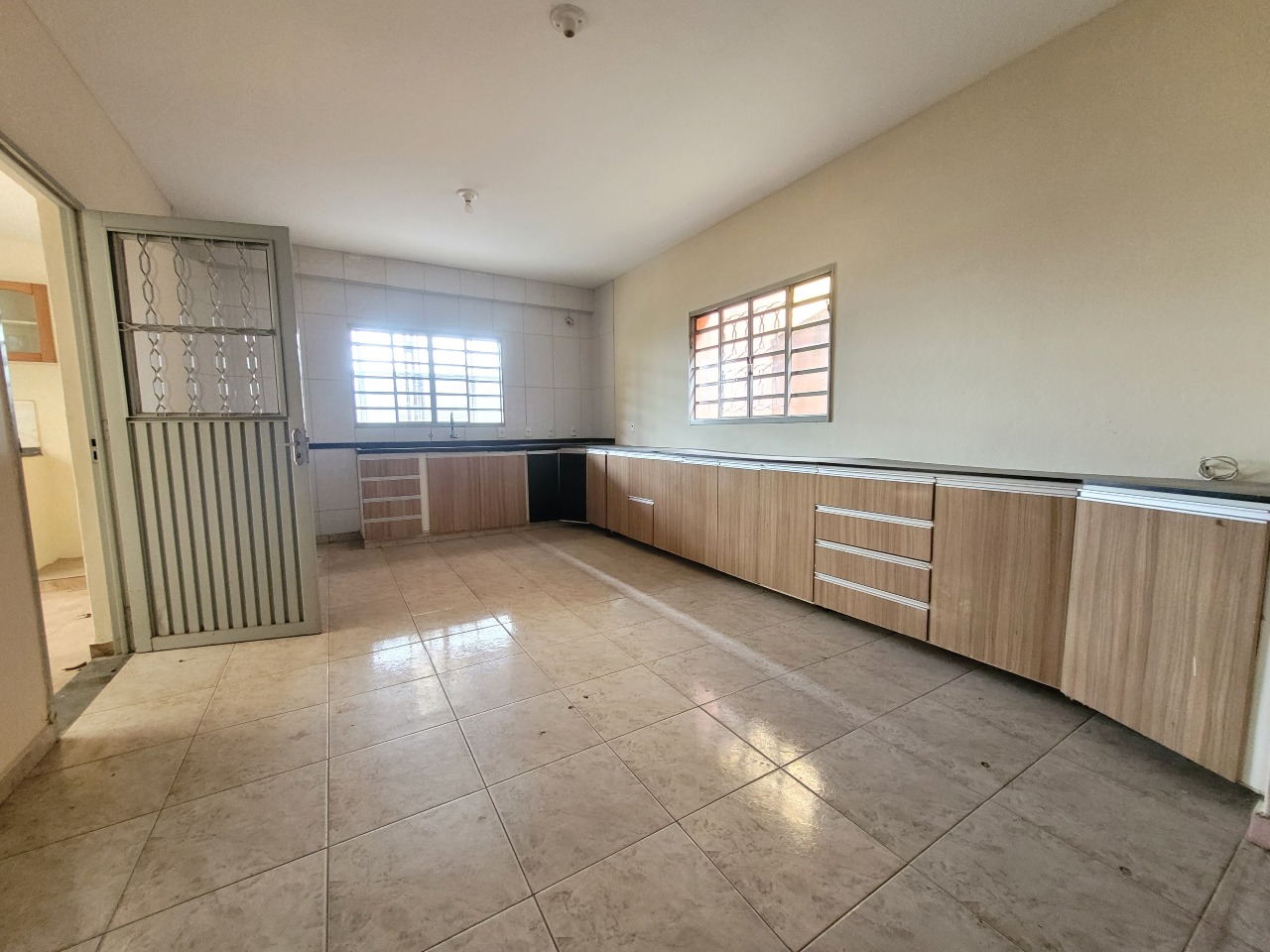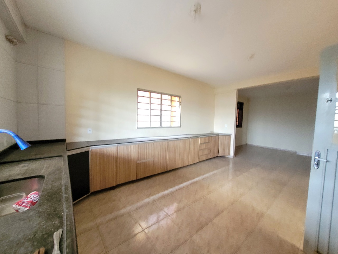 - Cozinha com armários e bancada em granito;